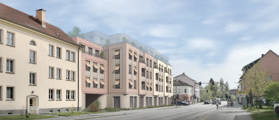Bedingt durch die Einpassung in das Stadtbild wird die Errichtung mit einem Dämmsystem inklusive Putzes und farblichen Anstrich.