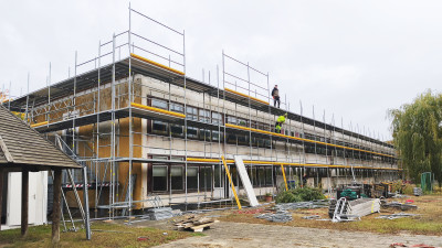 Die Arbeiten laufen auf Hochtouren. Die neuen Fenster sind bereits eingesetzt, die Entkernung ist fast abgeschlossen.