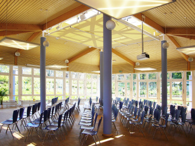 Funktional und farbenfroh, so zeigt sich das eingeschossige Werkstattgebäude der v. Bodelschwinghschen Anstalten Bethel in Bielefeld. Drei Arbeitsbereiche mit insgesamt 80 Werkstattplätzen sind hier entstanden.