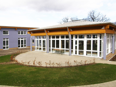 Damit kein Arbeitsbereich den anderen stört, haben wir Haupteingang, Seiteneingang, Lieferhof, Gartenbaubereich und Außenflächen der Arbeitsgruppen räumlich voneinander getrennt.