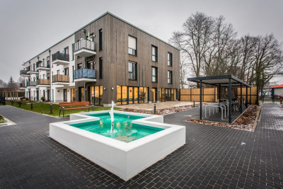 Die Wohnungen sind gekoppelt an ein Serviceangebot für Betreuung in mehreren Stufen. Ein Gemeinschaftsbereich im Erdgeschoss des Hauses 1 bietet Raum für Veranstaltungen oder individuelle Zusammenkünfte. Gleich nebenan befindet sich ein Büroraum für das Personal des Pflegedienstes, das zu festen Zeiten den Bewohnern vor Ort zur Verfügung steht.
