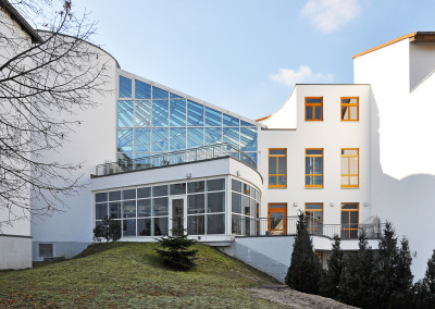 Ausgelegt ist das Domizil für 100 Bettenplätze. Den bestehenden Altbau haben wir unter Berücksichtigung der vorhandenen städtebaulichen Strukturen geschickt durch einen Neubauteil ergänzt, wodurch das Seniorenheim ein unverwechselbares Erscheinungsbild erhalten hat.